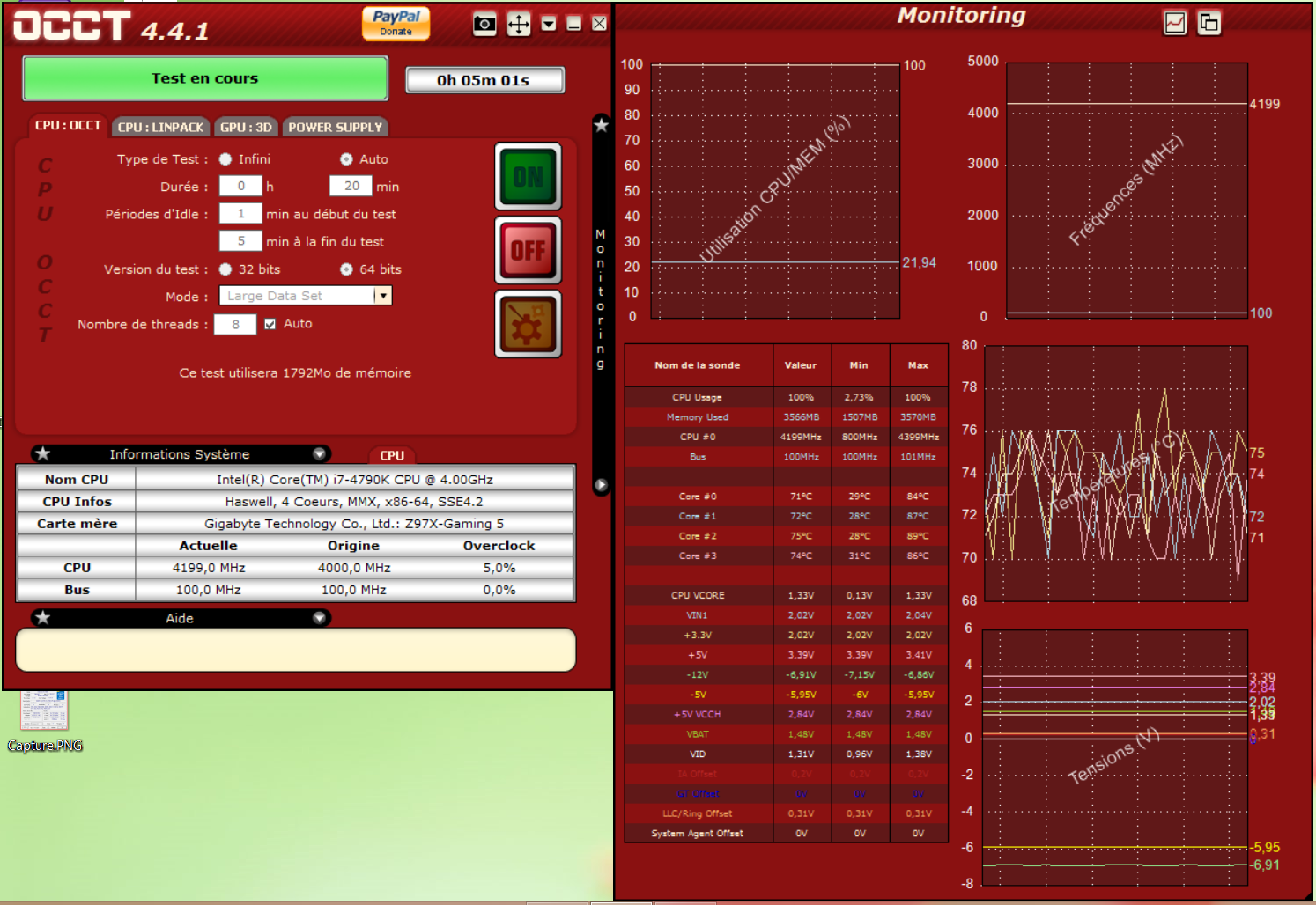 ce que je n'ai pas compris cest que mon proc sous stress il atteint que 4.2Ghz. donc si il est overclocke il doit depasser 4.4 Ghz / en tout ...