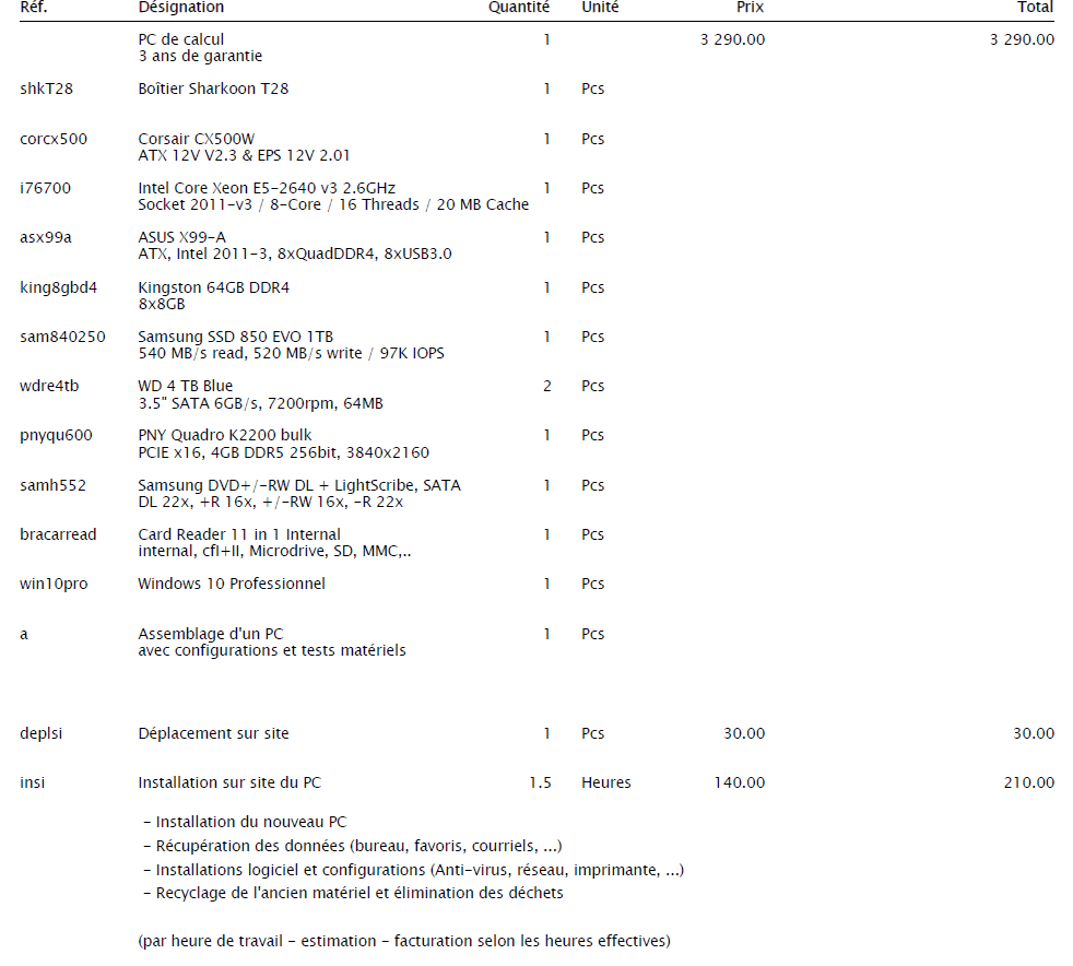Oops, je n'avais pas vu, mais le disque dur 4To est déjà en double exemplaire dans le devis !