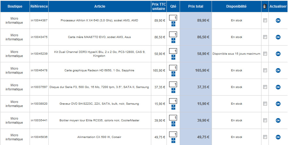 par contre si tu cherche les meilleur prix c'est cdiscount le meilleur certain te le deconseillerons bien que moi j'ai passer des dizaine de commande parfois à plus de 200€ sans soucis. sauf parfois un délais de livraisons assez long mais au moins c'est moi cher.