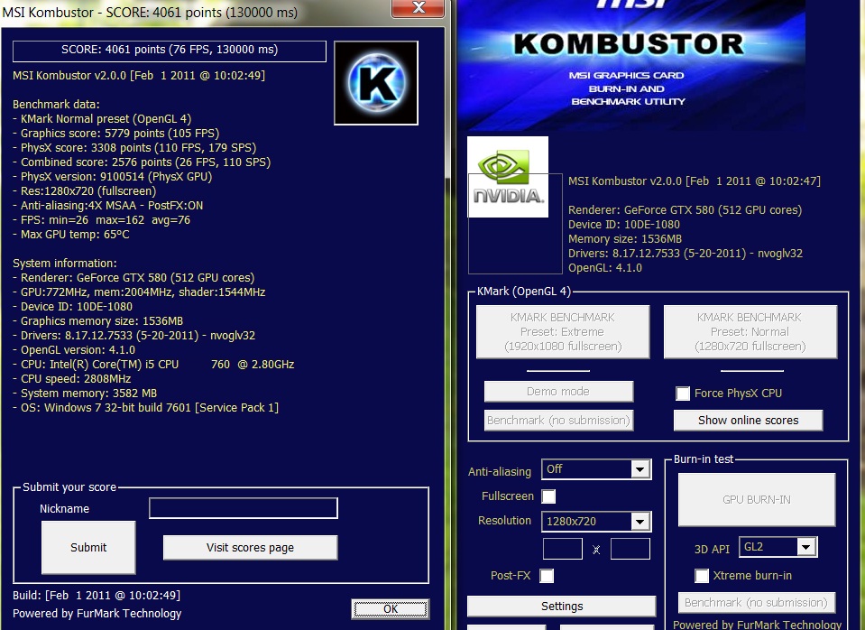bench KOMBUSTOR fourni avec le programme MSI AFTERBURNER