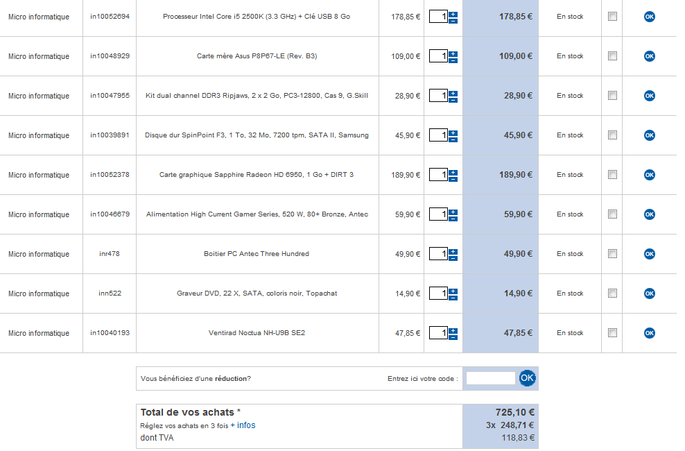 A oui tiens si tu veux metre moins que 800€ et moins que 600€ j'ai fais cette configuration tantôt pour un gars qui demander une configuration gamer à faible coût :