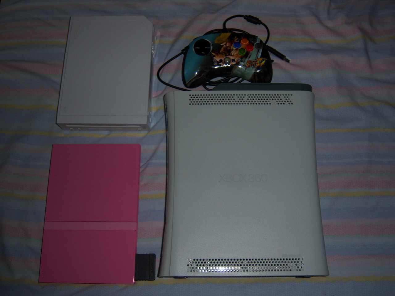 une WII + une 360 avec manette 6 boutons + une PS2 modifiée 50/60 hertz