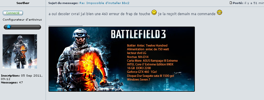 Grosse différence, c'est que mon screen c'étais avant ta modif, avec ta connerie étalée une fois de plus... sérieux arrêt de mythoner a tt bout de champs.. t'apportes rien a par troller.. oublie l'adresse du fofo et go jeuxvideo.com ...
