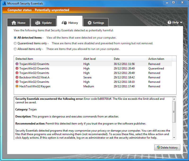 il detecte Trojan:Win32/Orsam!rts