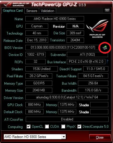 Une fois ces conditions réunies lancez gpu-z afin de sauvegarder le bios, on sait jamais.