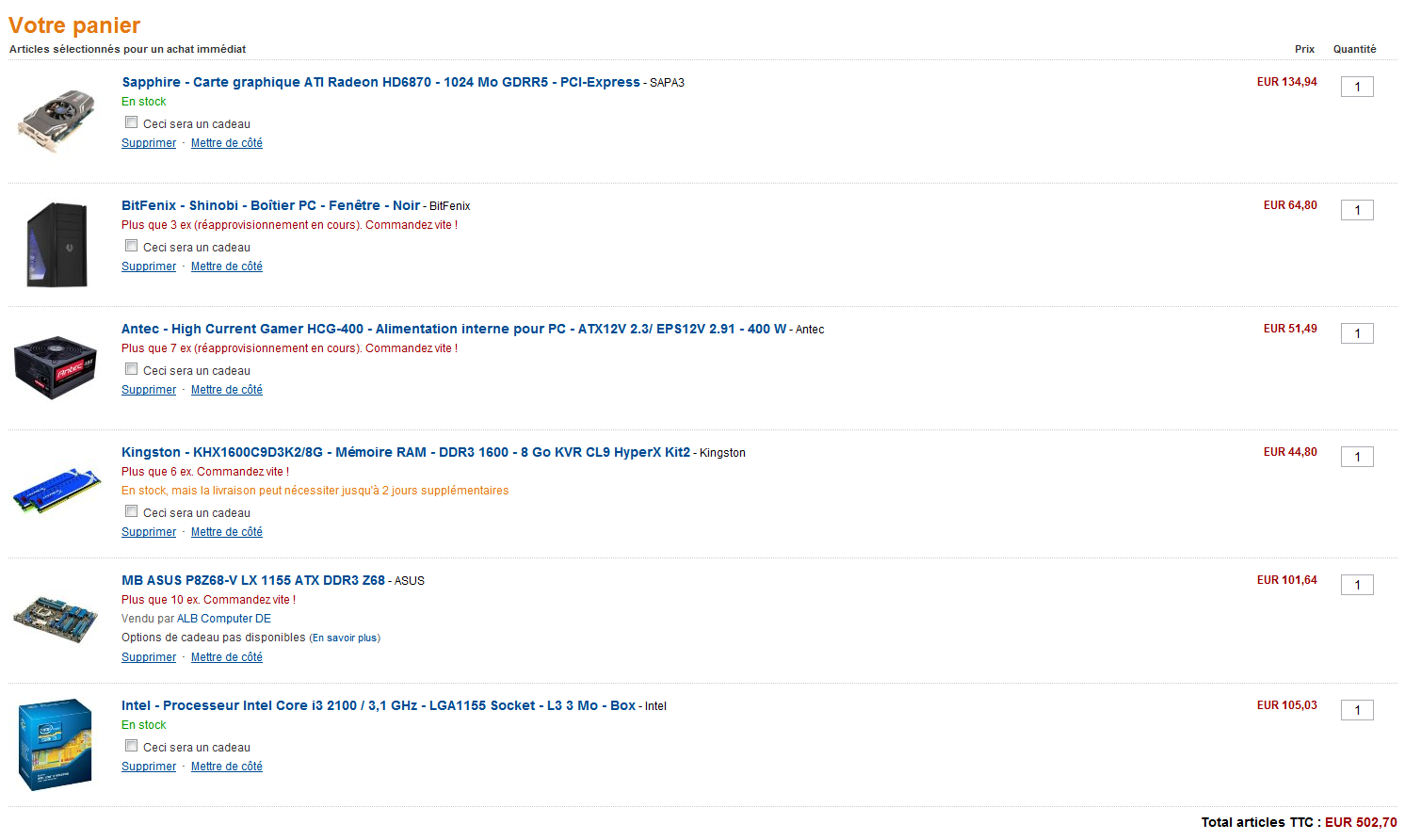 :plusun: pour le panier,et tu peux economiser encore sur la carte graphique car je vend exactement ce model a 100€ et elle a 2 ou 3 mois environs