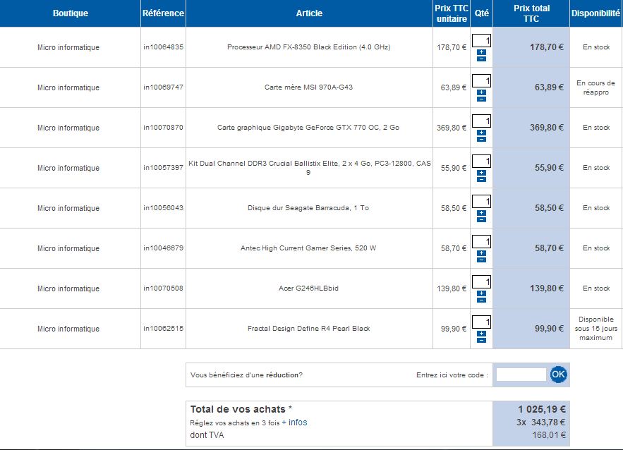 Bon après j'ai pas changer les barrettes de ram j'ai repris ton panier et j'ai changer quelque truc.