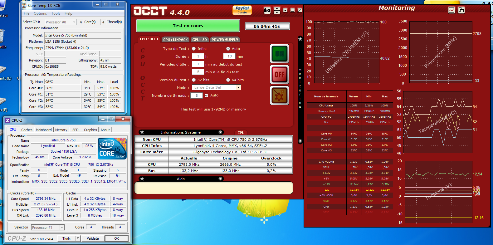 2- tu télécharge CPUZ (info),OCCT (test stabilité),coretemp et Hwmonitor (surveillance notamment température)