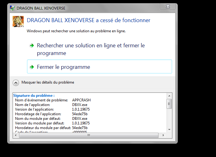 DRAGON BALL XENOVERSE a cessé de fonctionner