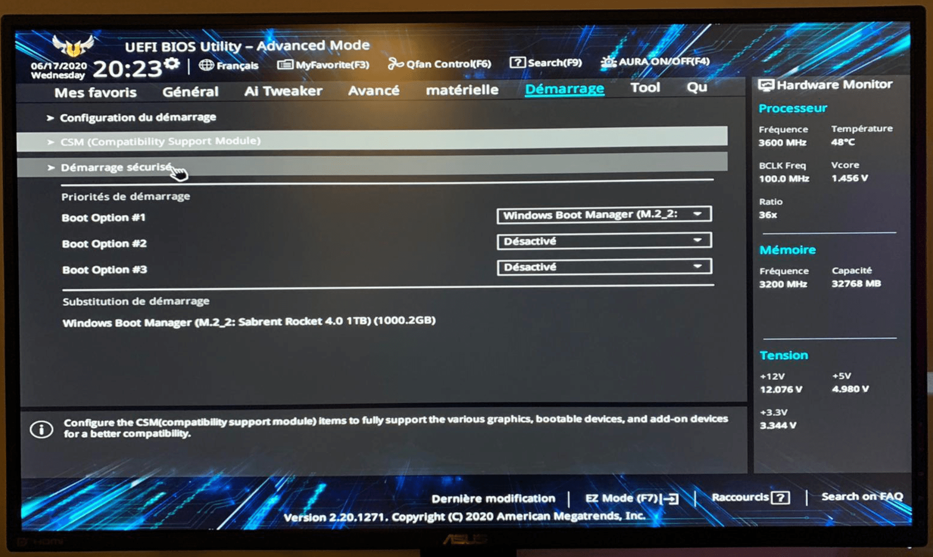 Du coup j’ai lancé l’installation de mon WIN 10 sur le SSD Sabrent mis dans le M.2 de ma carte mère. Mais à chaque installation mon disque boot à partir d’un windows boot manager.. Je ne comprends pas pourquoi.