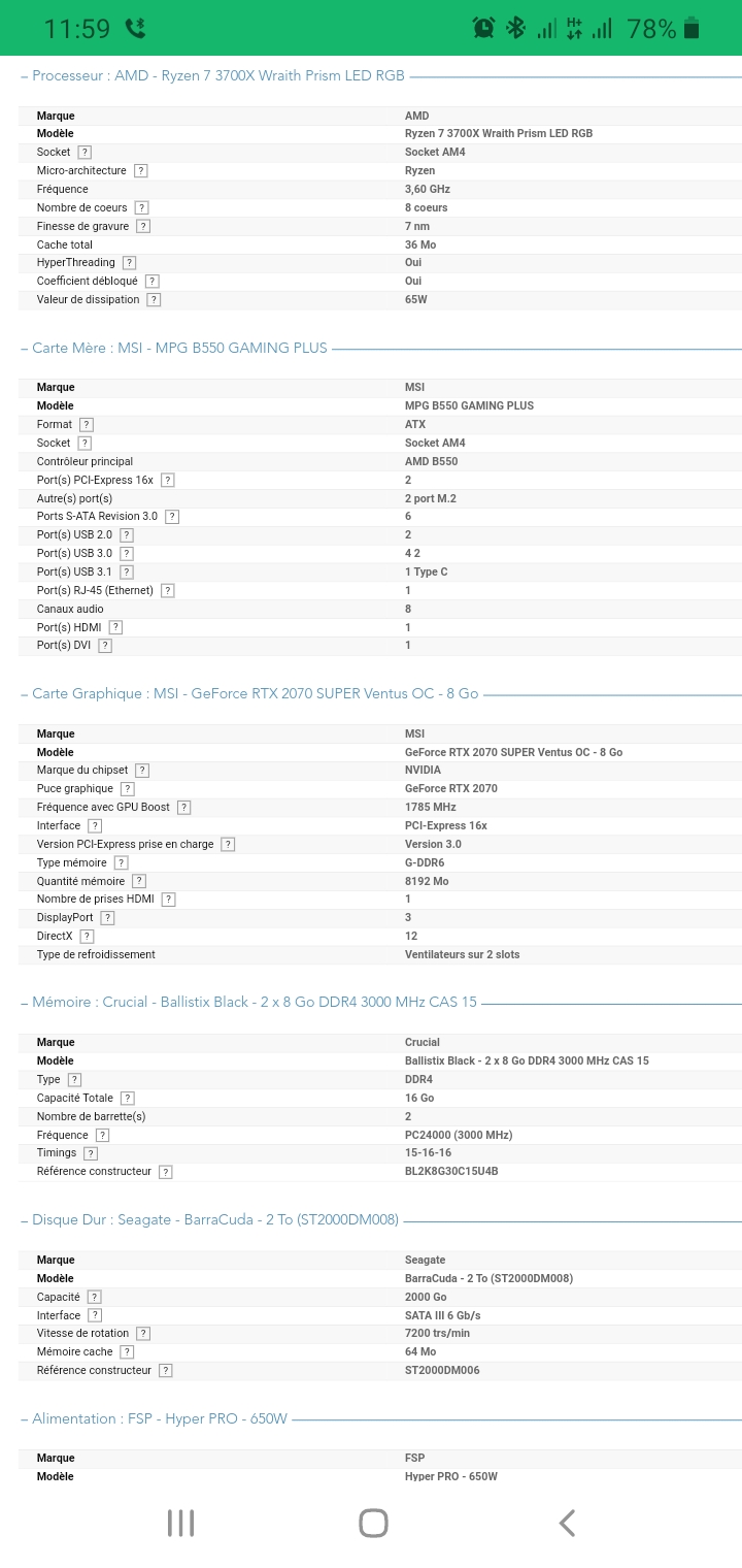 La config est pas mal, le processeur Ryzen 7 3700X est pas forcément le meilleur choix pour du jeu (un Ryzen 5 3600 ou 3600X est moins cher et aussi performant pour cet usage).