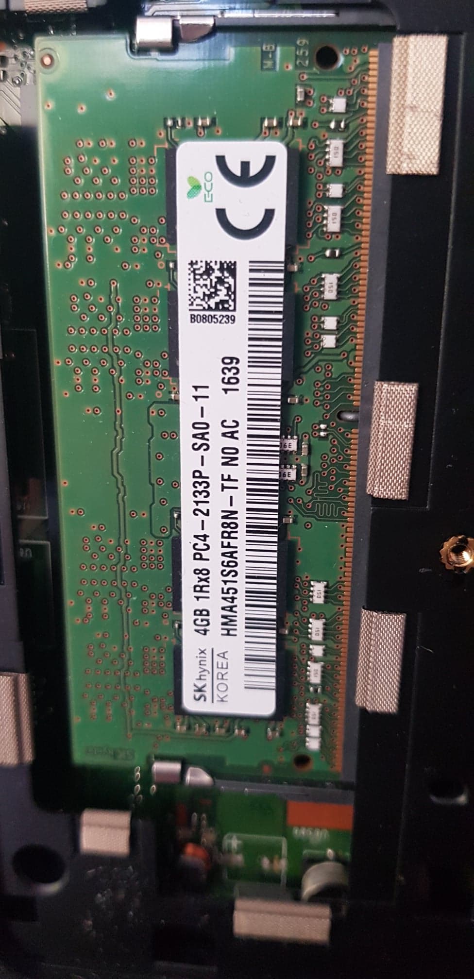 la carte mémoire est une SK Hynix 4GB 1Rx8 PC4-2133P-SAO-11