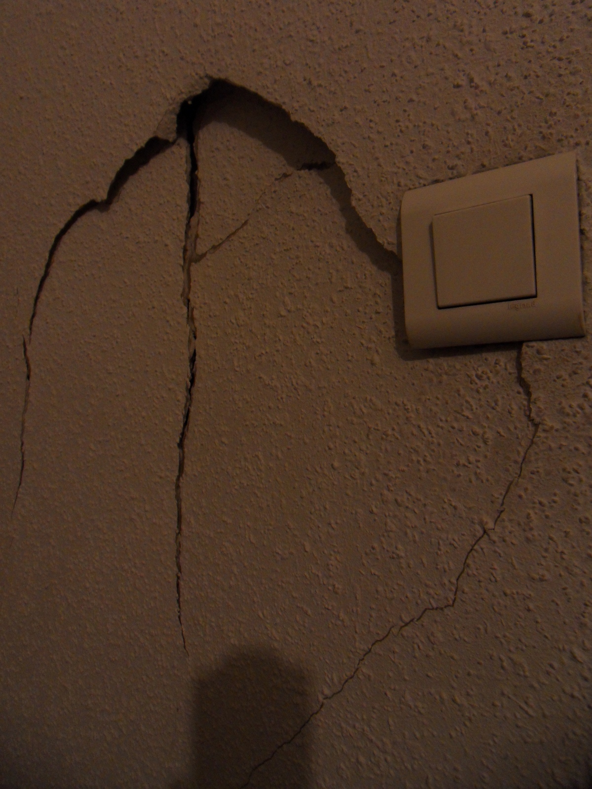 J'ai trébuché hier et je me suis pris un mur dans mon appart, voilà la conséquence sur le mur: A part un peu de poussière sur ma chemise au niveau de mon épaule, je n'ai rien eu