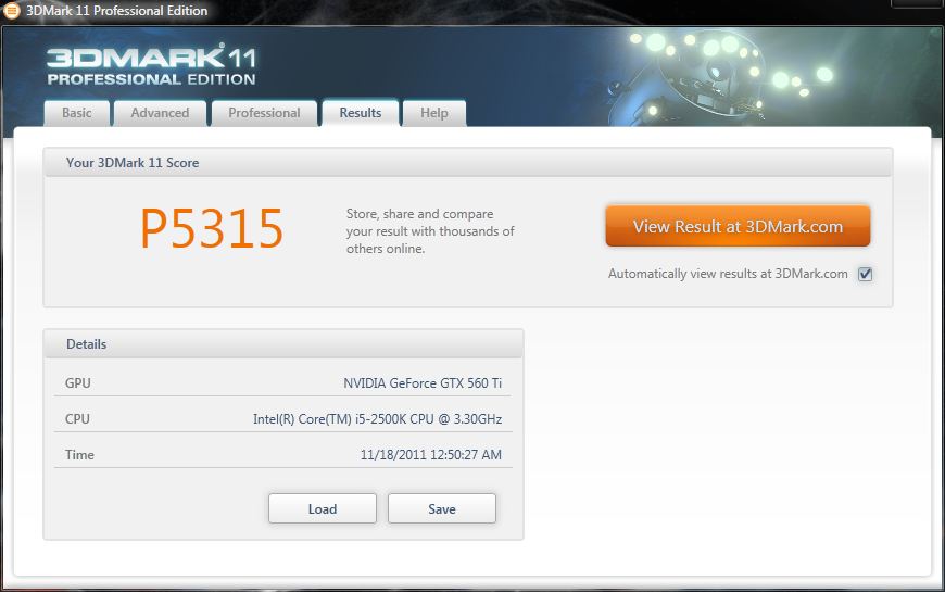 J'ai effectué les tests sous 3DMARK 2011 basic édition,tous les paramètres par défaut.