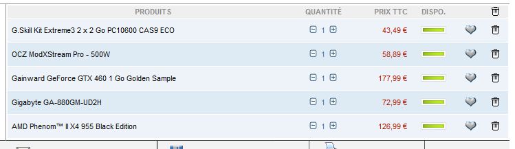 OUi je me doute bien mais la carte graphique je compte l'acheter un peu plus tard quand les 560gtx seront sorti peut être une baisse de prix sur les 460gtx :)