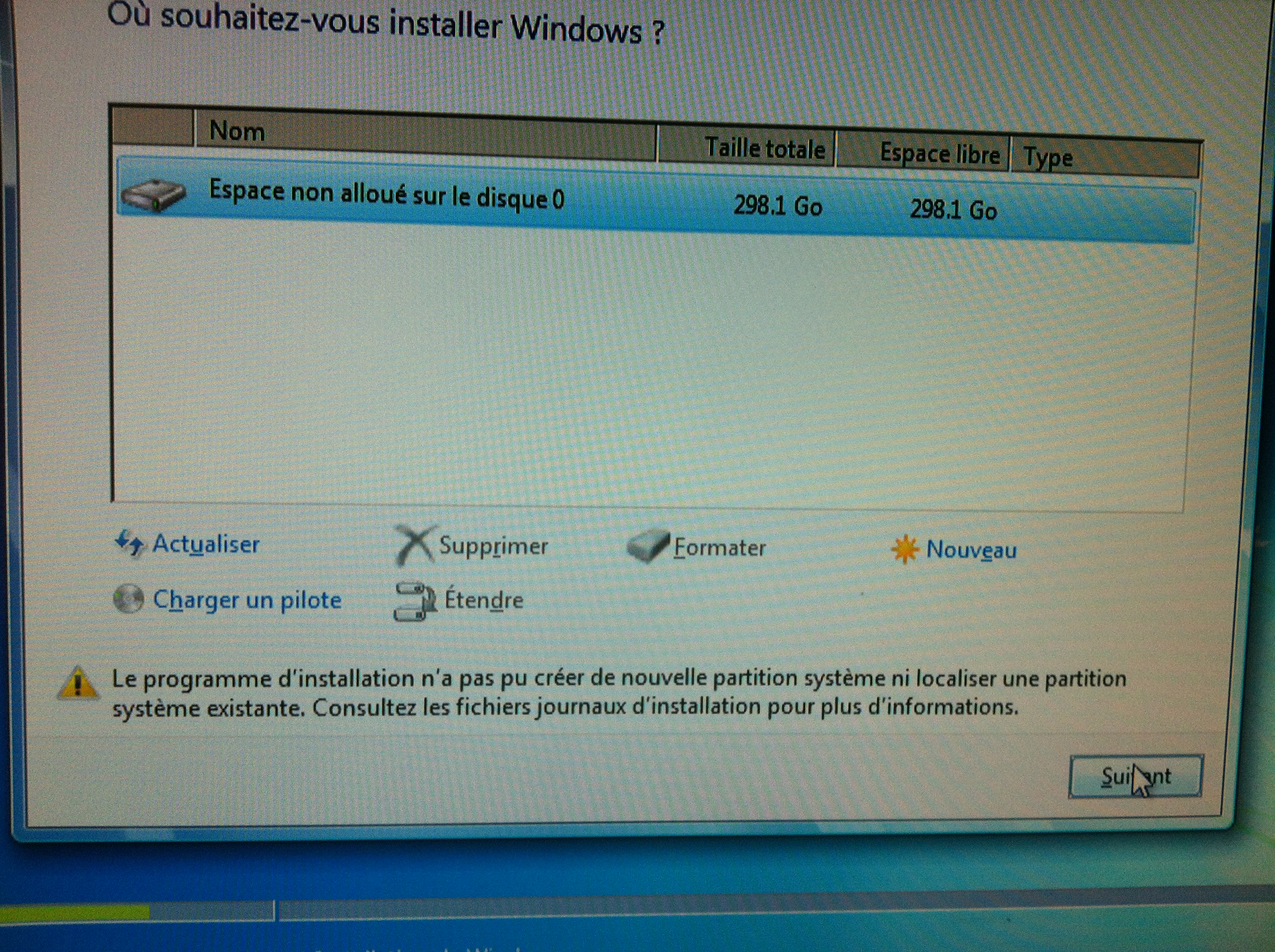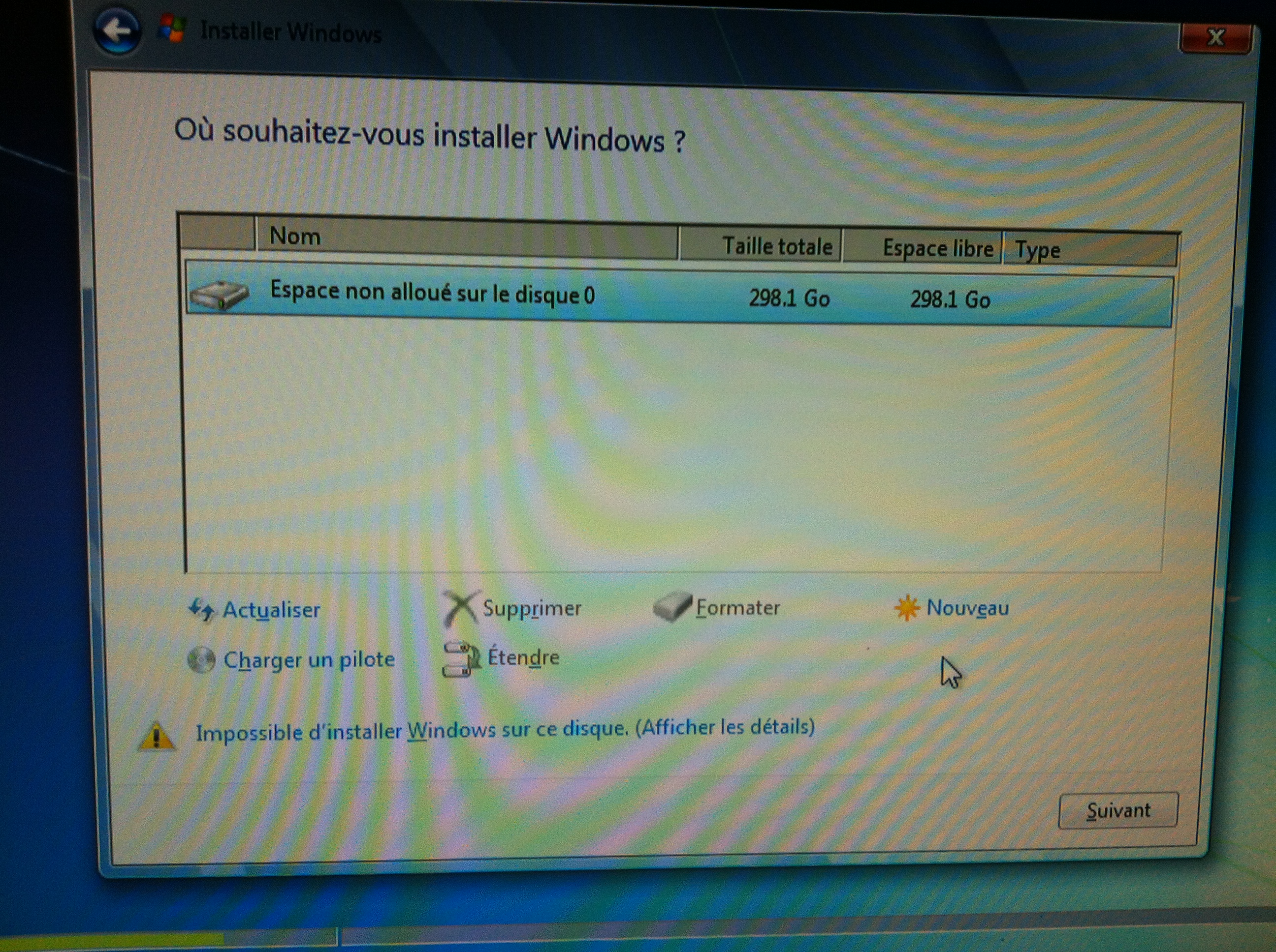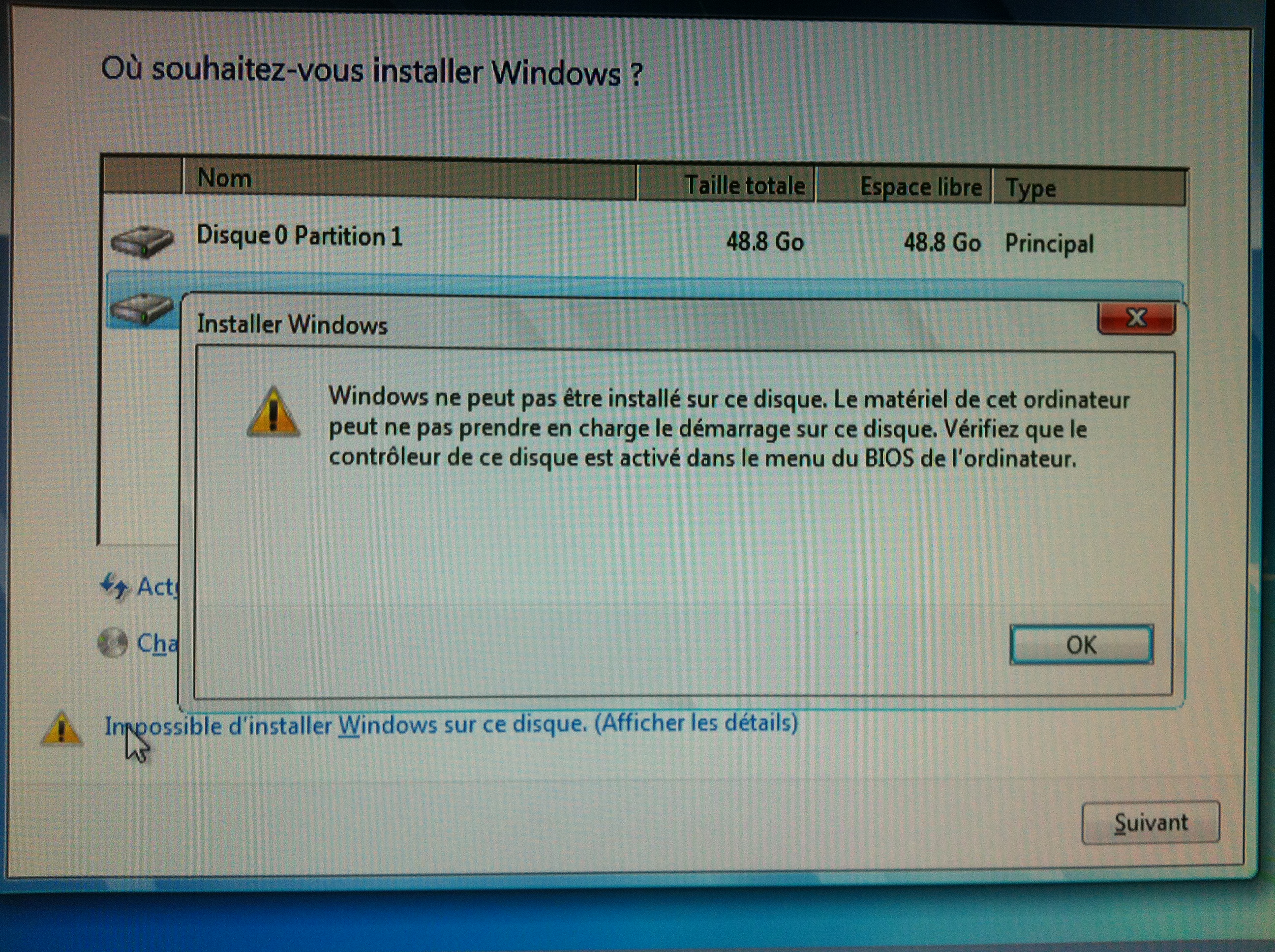 Mais quand il me dise impossible d'intaller windows sur ce disque ces un W7 32bit peut etre que ces du a ca non ? peut etre que je me trompe ?