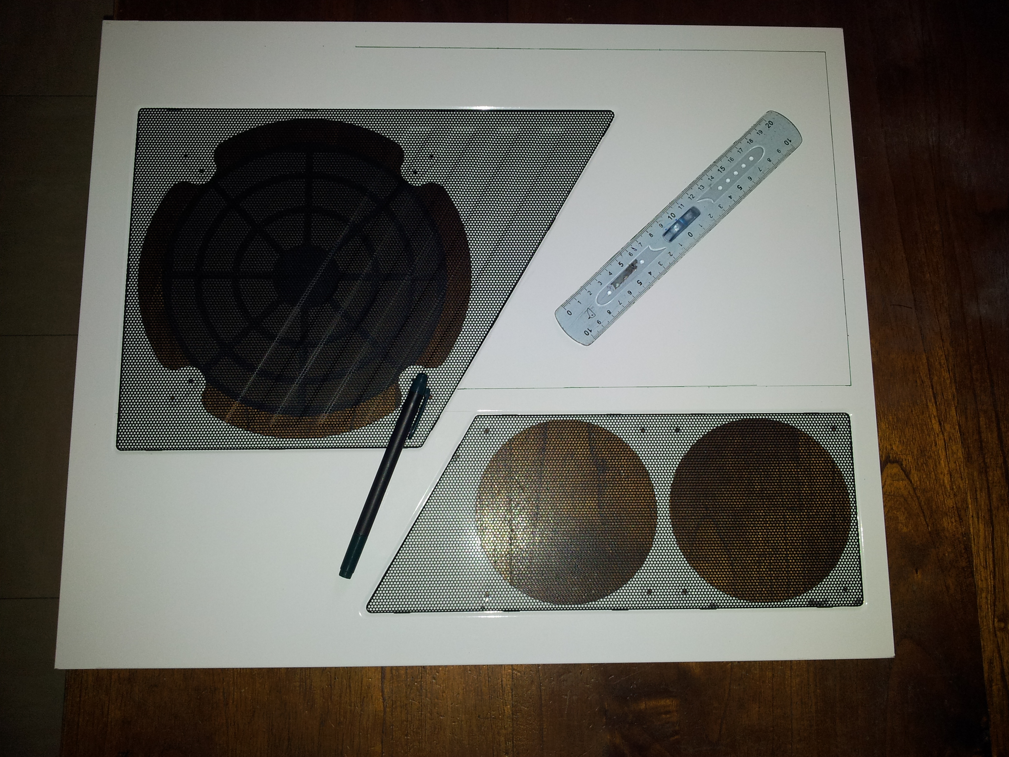et pour l'instant la dernière phase, une photo du tracage terminé, reste plus qu'a se lancer dans la découpe en suivant très très précisément les cotes.<br />Dès que ca avancera plus je remettrais des photos.