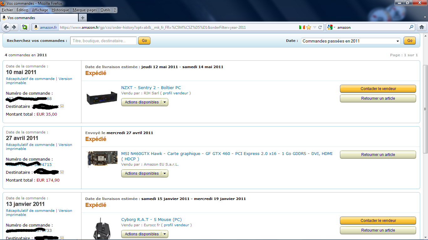 Pour répondre à Val je vais te mp, sinon j'ai les facture c'est bon, le réobus est de mai 2011 et la carte 460 en fait de avril 2011, je t'imprimerai ça au besoin :