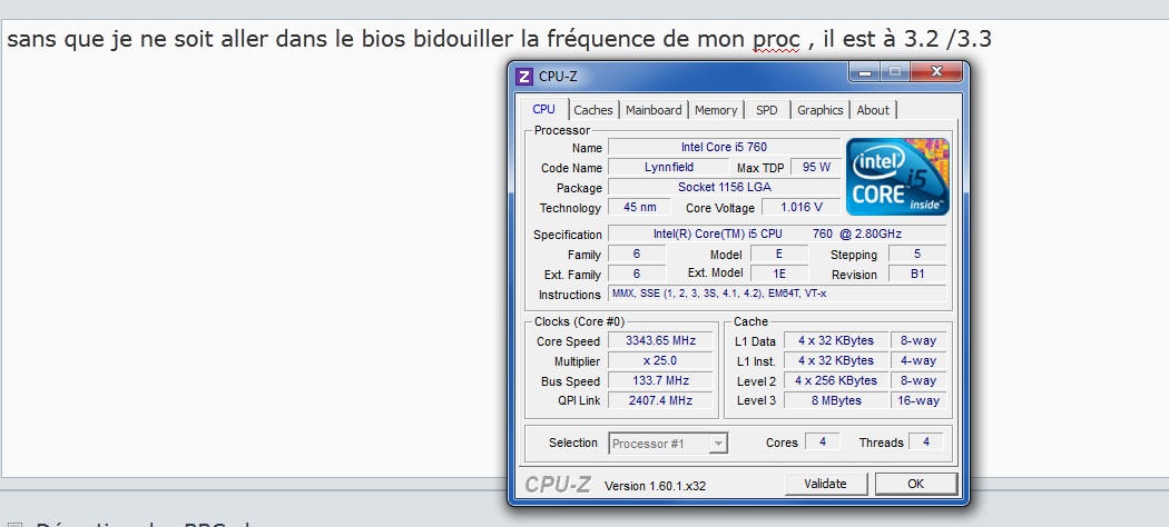 sans que je ne sois aller dans le bios bidouiller la fréquence de mon proc , il est à 3.2 /3.3