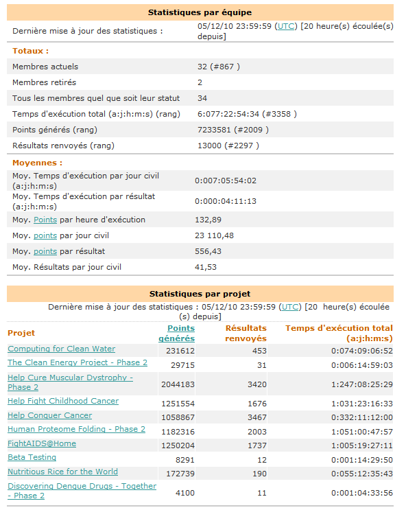 L'équipe *ConfigsPC* de WorldCommunityGrid