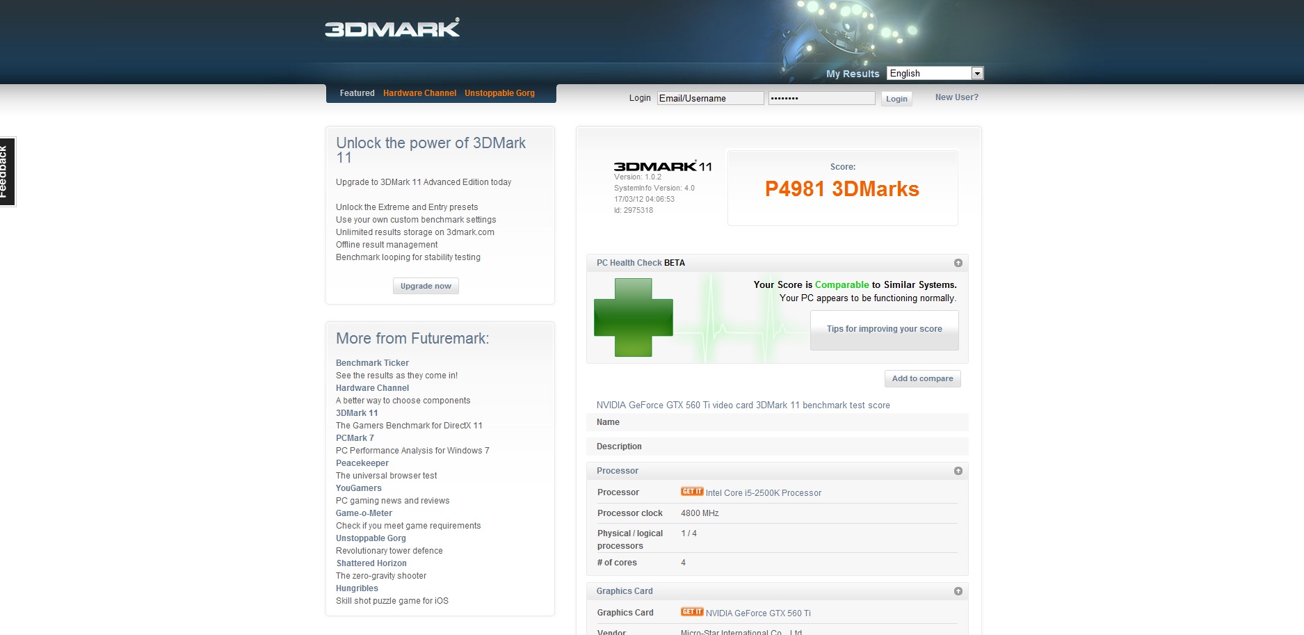 Bref voici le lien http://3dmark.com/3dm11/2975217;jsessio ... wsjcu2diz7