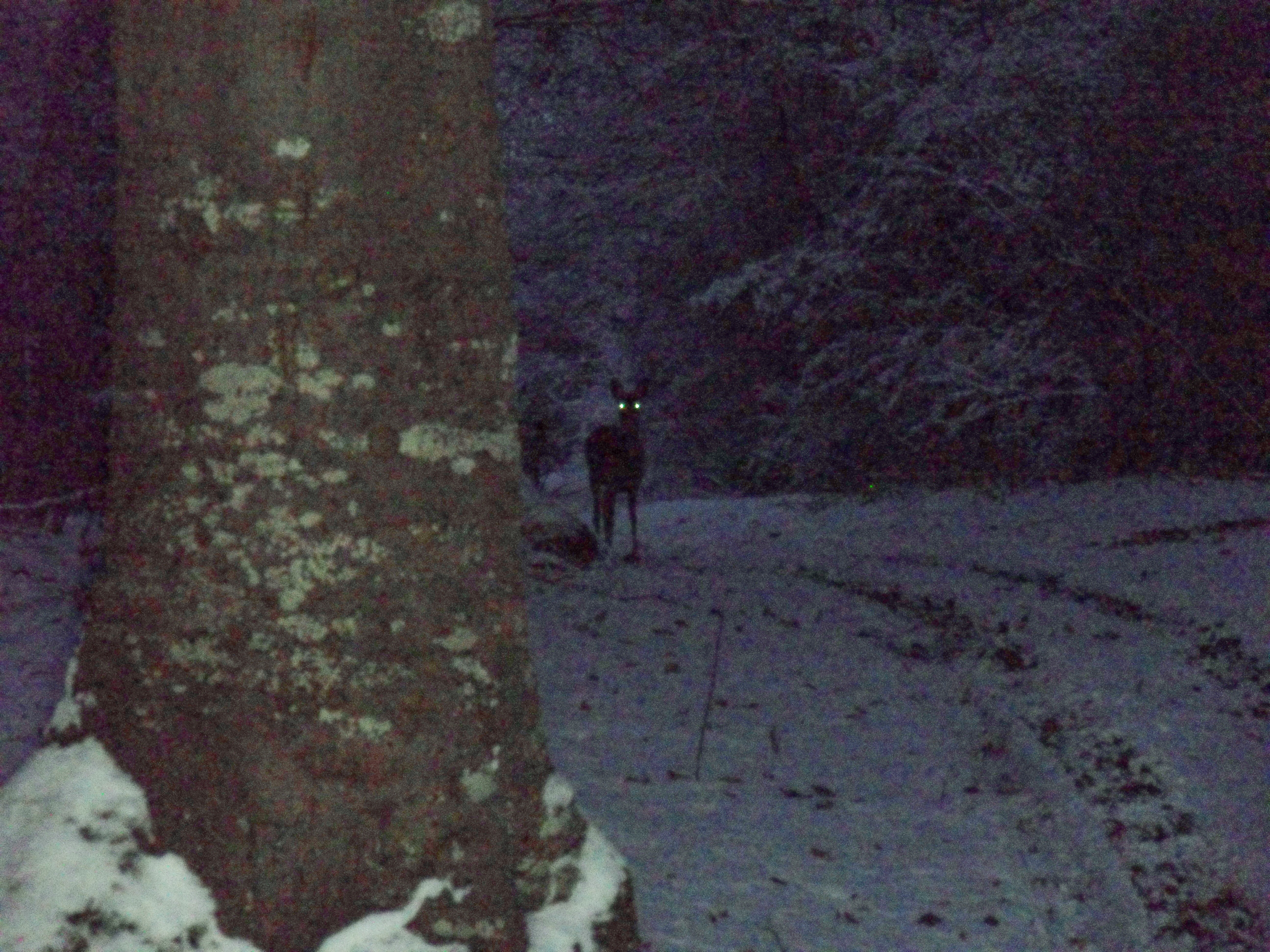 Désolé pour la qualité de la photo, il commençait à faire nuit, j'avais les doigts gelés et il a fallu que je dégaine rapidement pour le prendre, il n'y avait 10 mètres entre lui et moi. Grande satisfaction ce jour là, mis à part la qualité de la photo