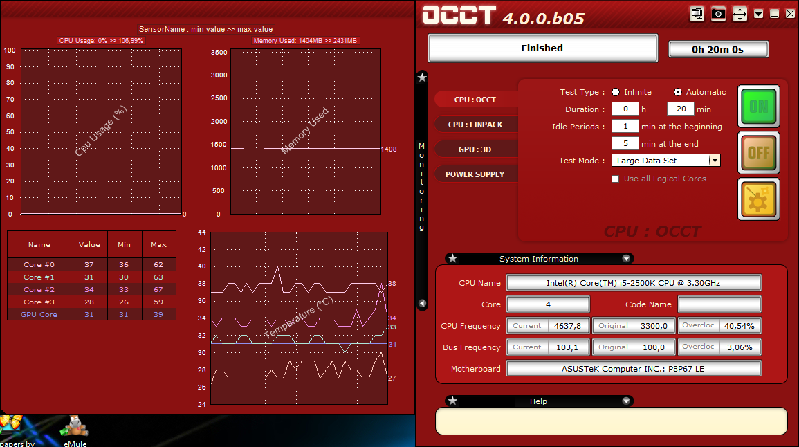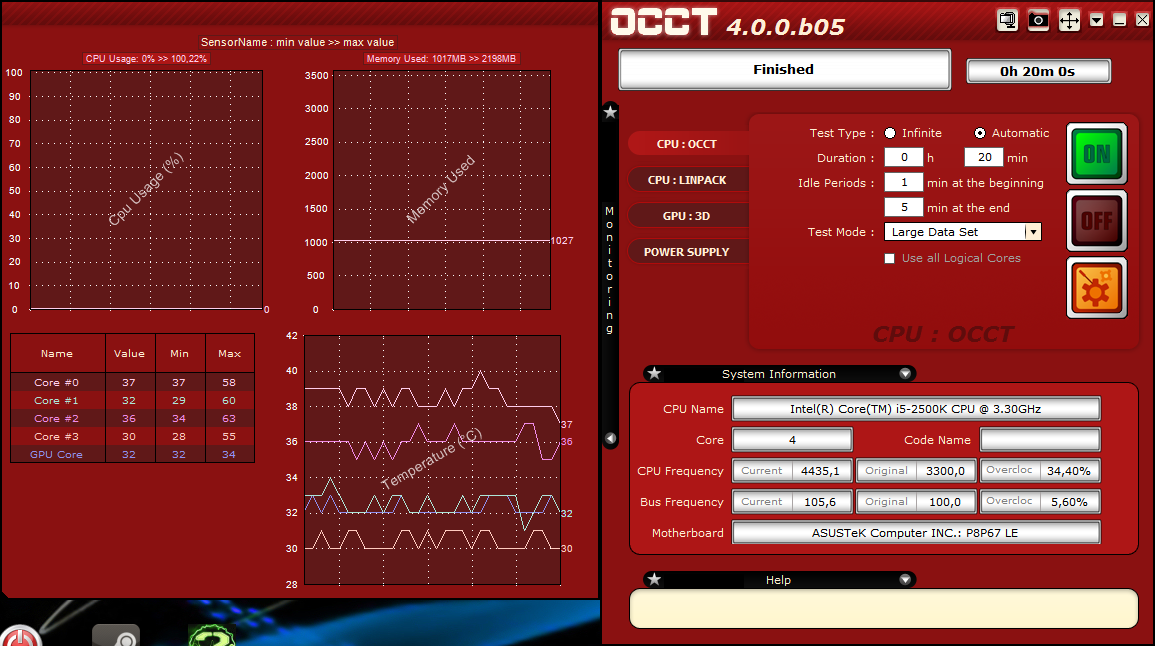 voila un occt pour i5 2500k