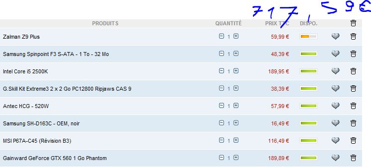 (je lui ai pris un 2500k pour un overclock ultérieur ainsi qu'une GTX560 qui est pas mal, pas aussi bien que la Ti mais pas mal :) )