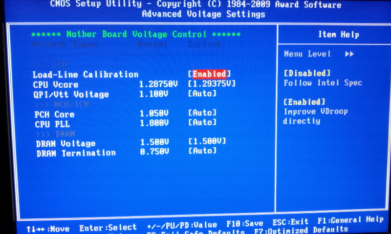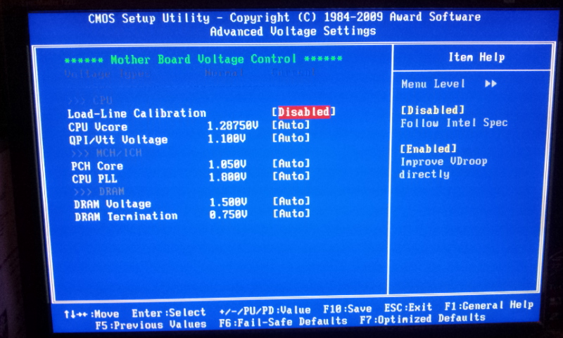 Load line calibration : Disable à passer en enable