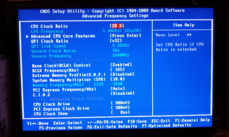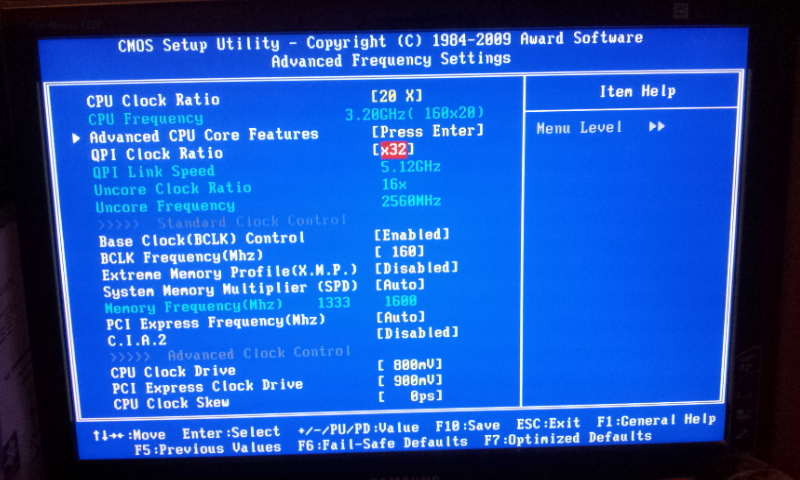 Premièrement, je ne peux pas modifier uncore clok ratio il reste grisé malgré le changement de Qpi clock ratio de auto vers 32 (il n'y a qu'un autre choix, 36)