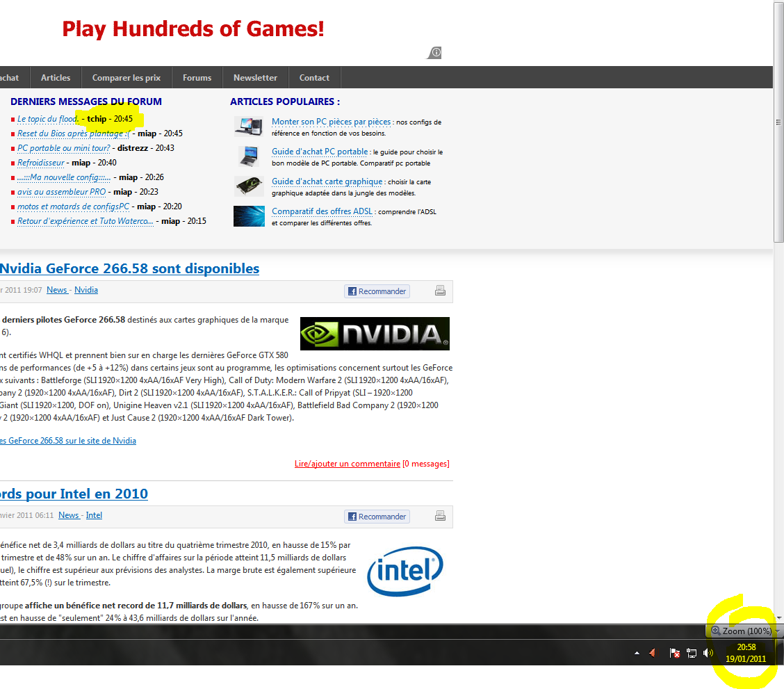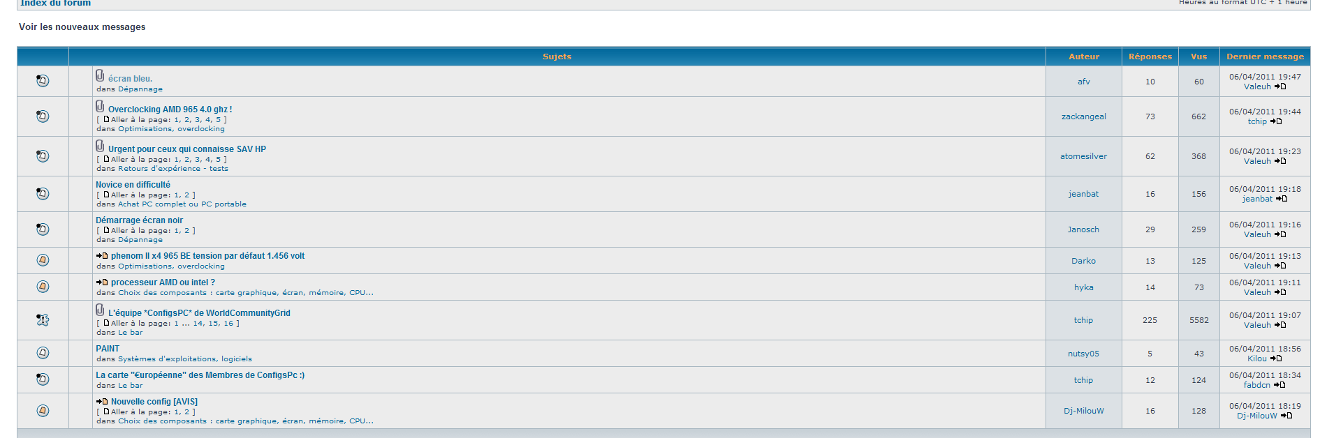 Alors à l'acceuil regardez bien l'heure Puis en cliquant sur le coté droit du site sur " les nouveaux message du forum" regardez bien l'heure 1Heure de décalage