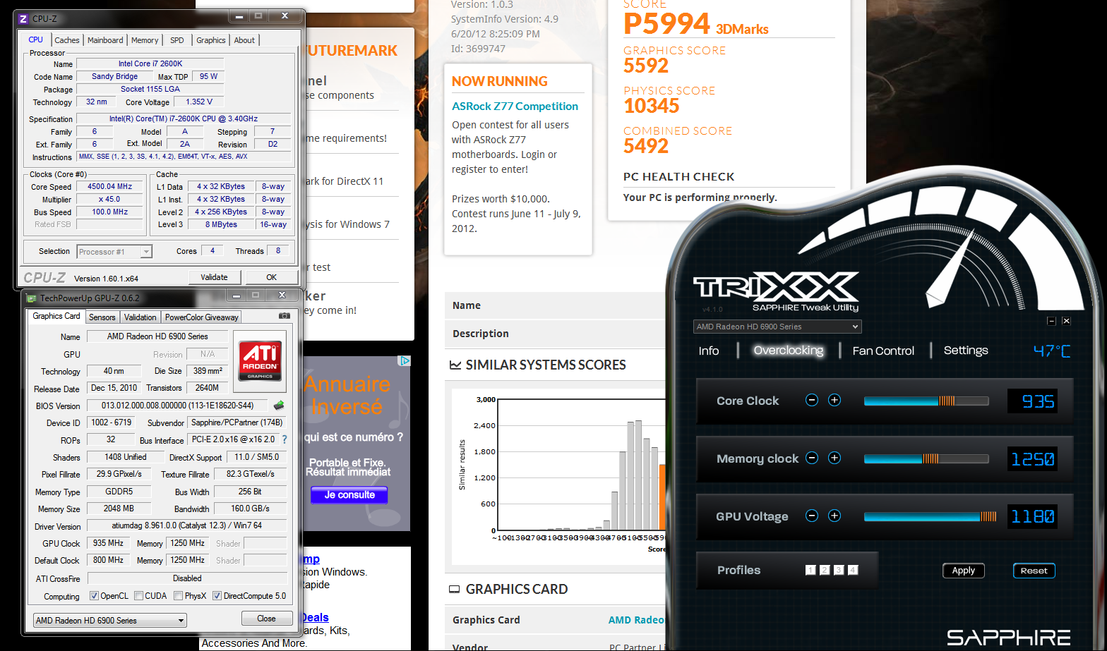 A 950 tu devrais faire les 6000 point tu as des plantage sous 3Dmark11 a cette fréquence ?
