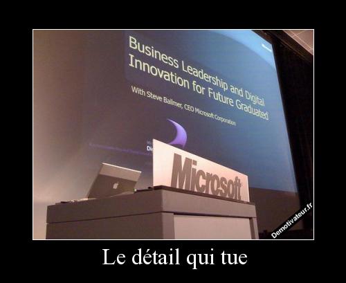 Mais bon la plus grosse erreur que microsoft ai pu faire, ce n'est pas windows, ce n'est pas le blue screen of the dead, ce n'est pas l'utilisation d'une machine concurrente lors d'une présentation, mais plutôt ceci :