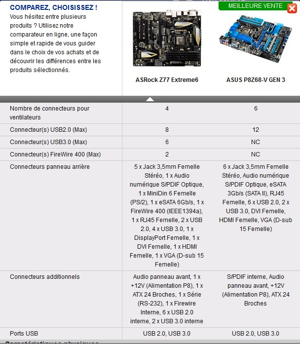 Et la Carte Mère qui ne figure pas sur la capture d'écran : http://www.amazon.fr/dp/B007KTY4QU/ref= ... B007KTY4QU