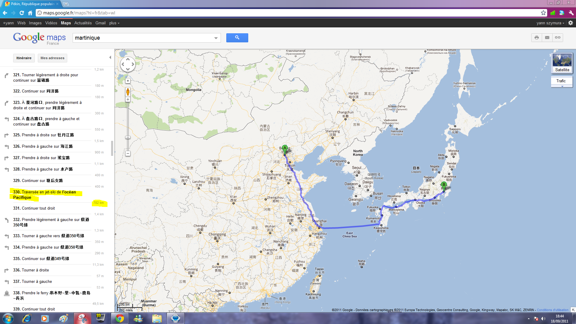 Ne faites pas attention c'est ecrit martinique dans la barre de recherche mais c'est bien un itineraire Pekin-Tokyo