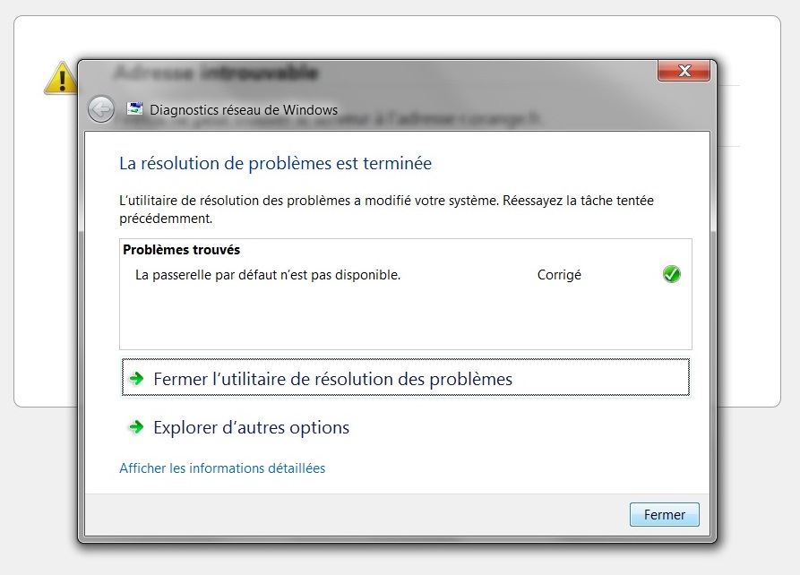 l'icône réseau affiche un avertissement et je suis obligé de faire un clic droit pour " résoudre les problèmes "