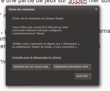 impossible de se connecter à STEAM