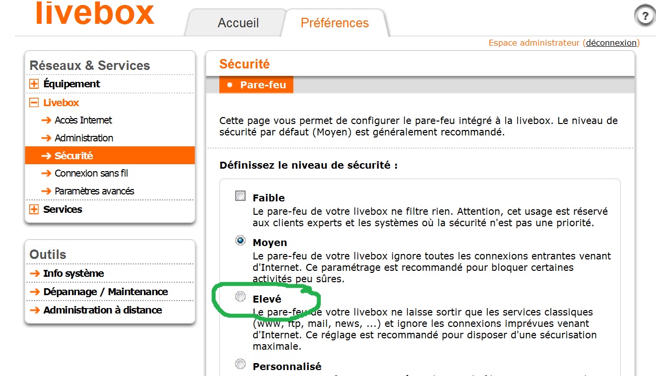 le pare-feu de la livebox était au level élevé ( et c'est moi qui l'avais changé )