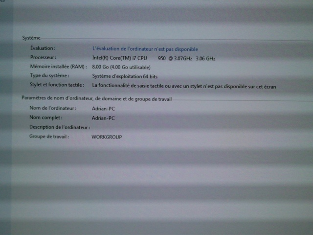 J'ai pas d'idée pour ton problème en revanche si tu as 8 go c'est que tu as 2 barrettes de 4 go, or sur socket 1366 on utilise normalement 3 barrettes pour du tri channel, donc 3 go ou 6 go