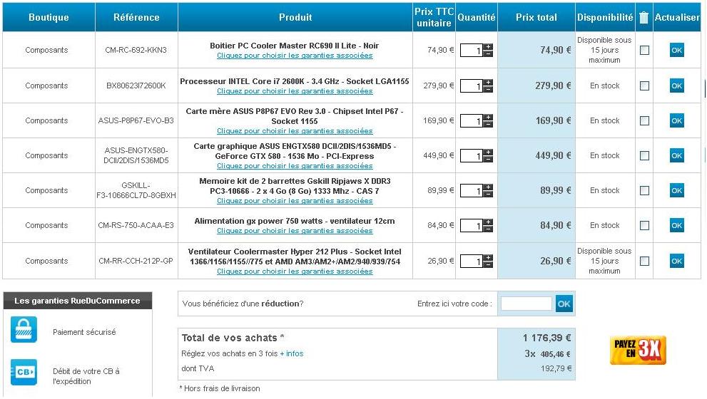 Ok, je pense donc me prendre la config suivante, j'ai modifier la CG pour une GTX 570 et j'ai rajouté un DD en Sata 3 !