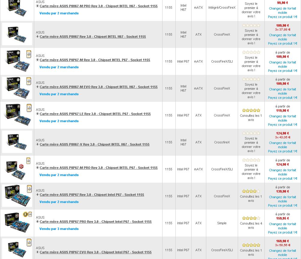 Par contre je me demandais quelles sont les différences entres tous les modèles ASUS de la P8P67, mis à part le format. Sachant que je compte prendre une CG Nvidia, mais pas de SLI, laquelle me conseilleriez-vous ?