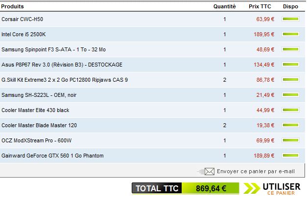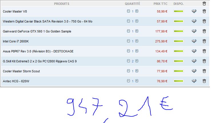 J'ai fait un nouveau devis avec un i7 2600k avec un V8 comme rad,