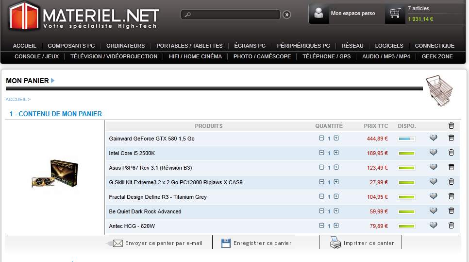 Alors chez materiel.net une fois que tu as fait t'en panier tu clic gauche sur le panier en haut a droite , sous le contenu du panier tu as écrit (envoyer ce panier par e-mail) tu tapes t'en adresse email perso et tu fait envoyer , ensuite tu vas dans ta boite mail tu ouvres le mail et tu fait un clic droit sur ( utiliser ce panier ) et tu clic sur (copier l'adresse du lien) et ensuite sur le forum tu le colle pour mettre le panier voila c'est pas plus compliqué que ça
