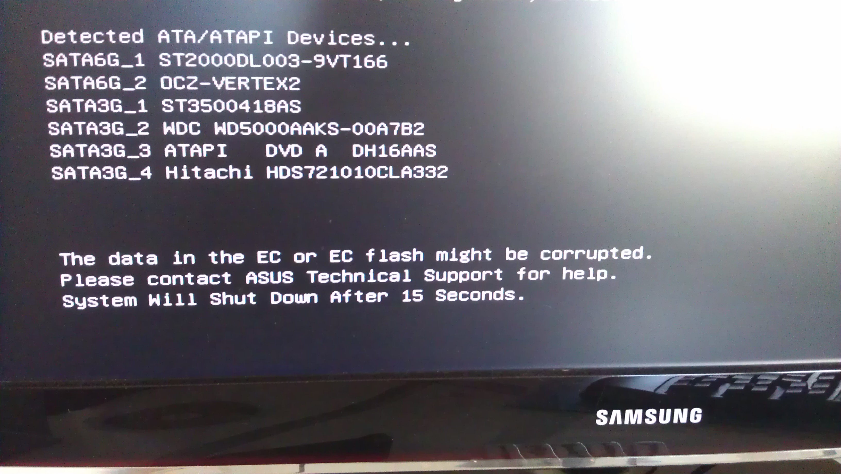 The data un the ec or es flash is corrupt...