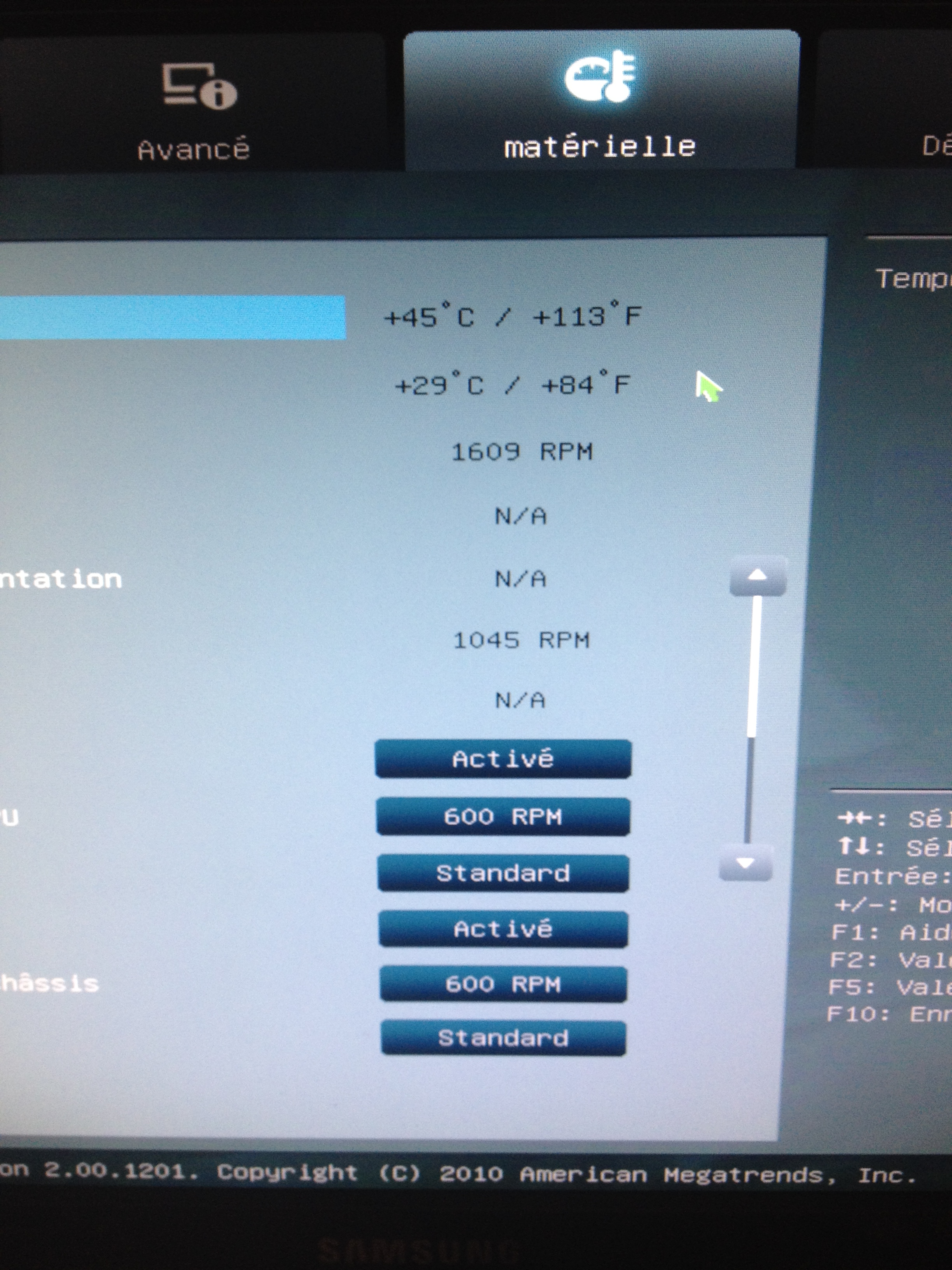 Les températures sont bien en °c et je n'avais jamais rien touché avant dans le BIOS, enssuite le reste des températures sont normal