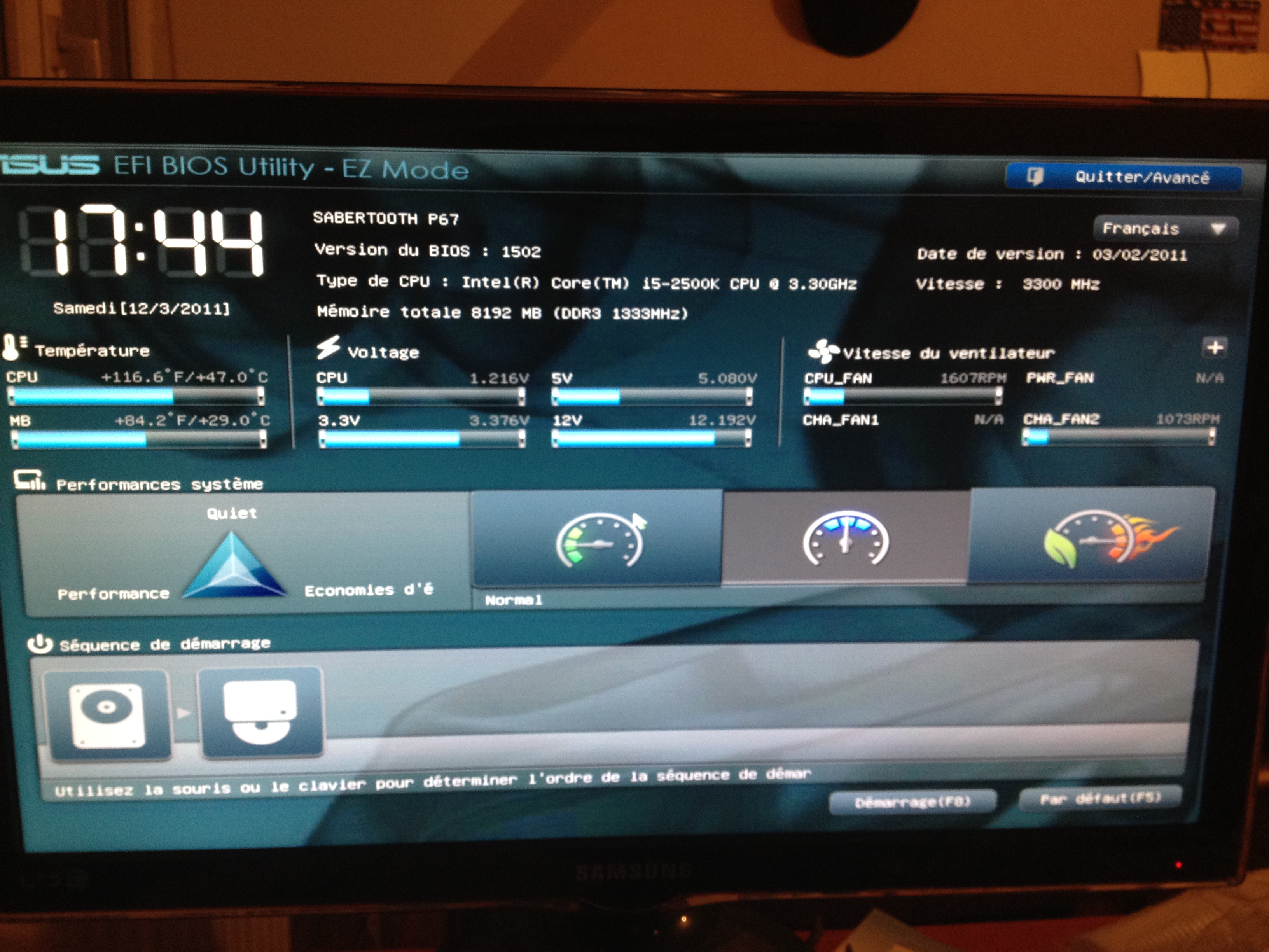 hw monitor te donne cb en temperature ? Le thermal radar de AI Suite te donne cb aussi pr le cpu ? (si au passage tu arrives a aller voir ds le bios pr ns donner le relever de température ca serait pas mal aussi