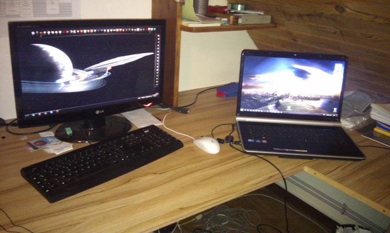 Voici donc le miens avec son jolis bordel , pour se qui se trouve derrière le bureau c'est top secret mais y'a du monde
