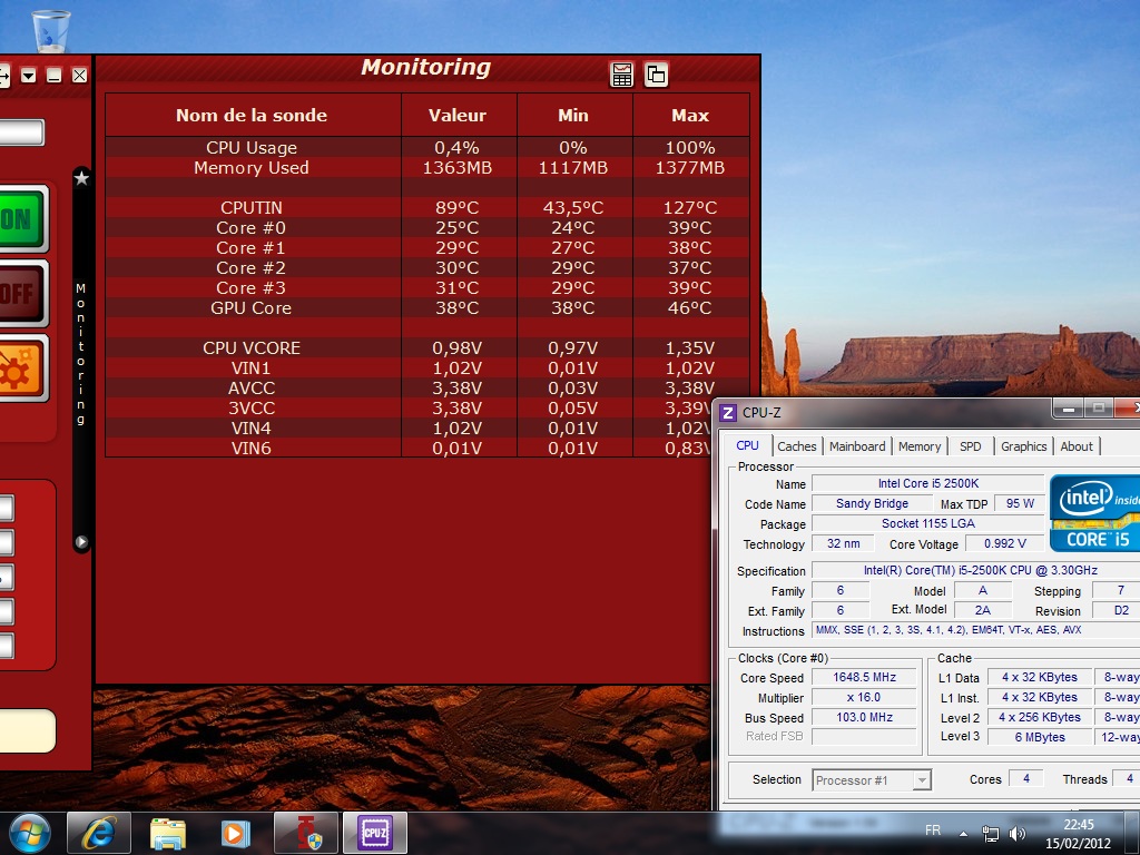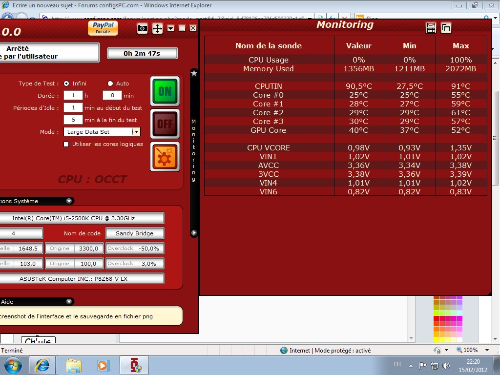 Fais nous un screen avec OCCT et CPUZ ouverts côte à côte pour qu'on vérifie