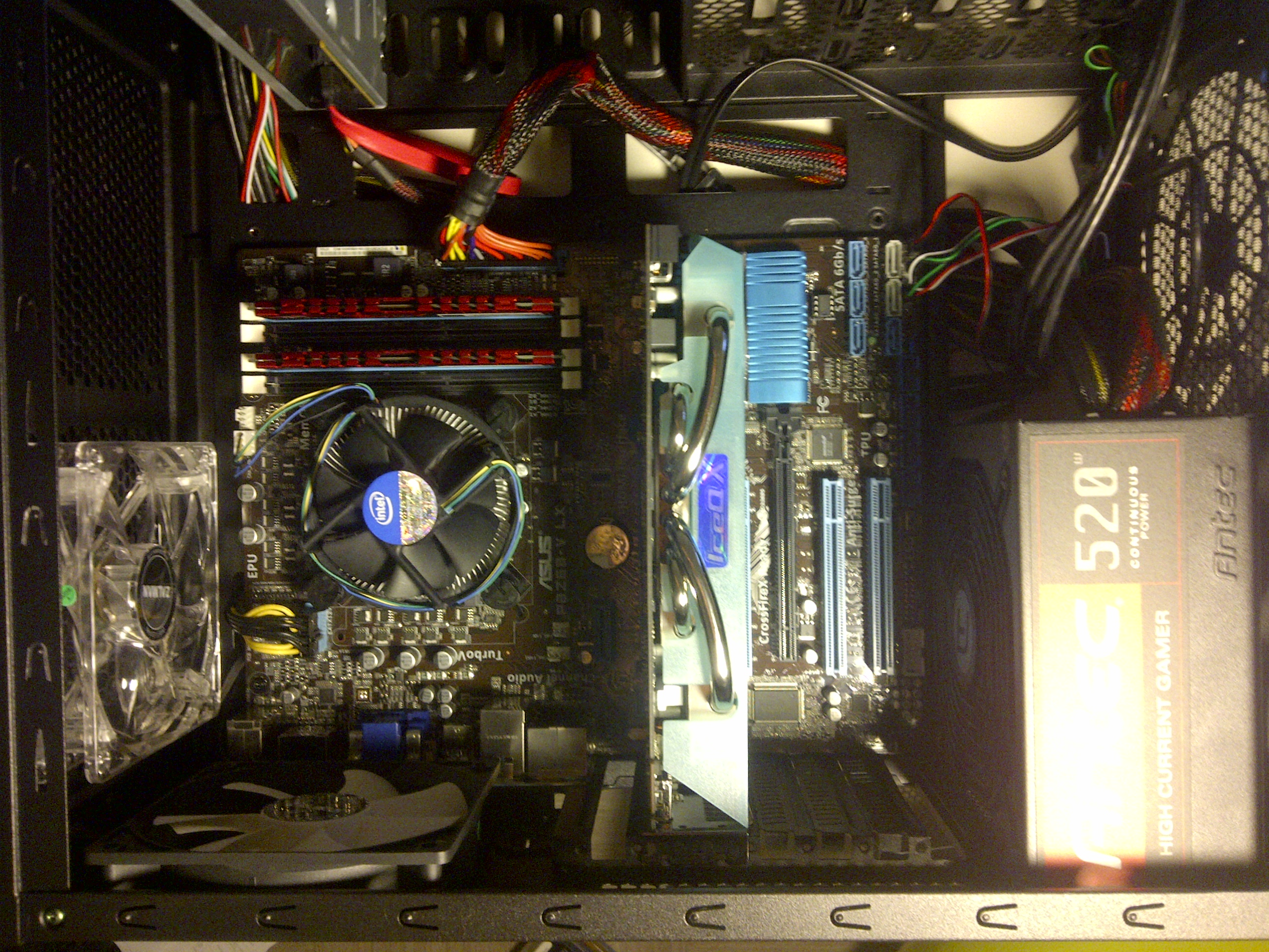 Bon, j'avais tout branché correctement etc. allumé mon ordi ça fonctionnait. Pour l'OS, vu que mon ancienne config n'avait qu'un lecteur optique IDE (je sais...) j'ai racheté un graveur SATA; à côté de ça je voulais tenter l'installation de W7 via disque dur externe. J'ai donc trifouillé dans le BIOS (EFI Asus) jusque là tout allait bien. J'ai voulu régler l'heure, puis changer le disque de démarrage. Je l'avais mis sur un disque dur interne pour tester, il était détecté, ainsi que celui sur lequel je voulais installer l'OS (en attendant que je trouve comment faire avec mon DDE bootable), bref.