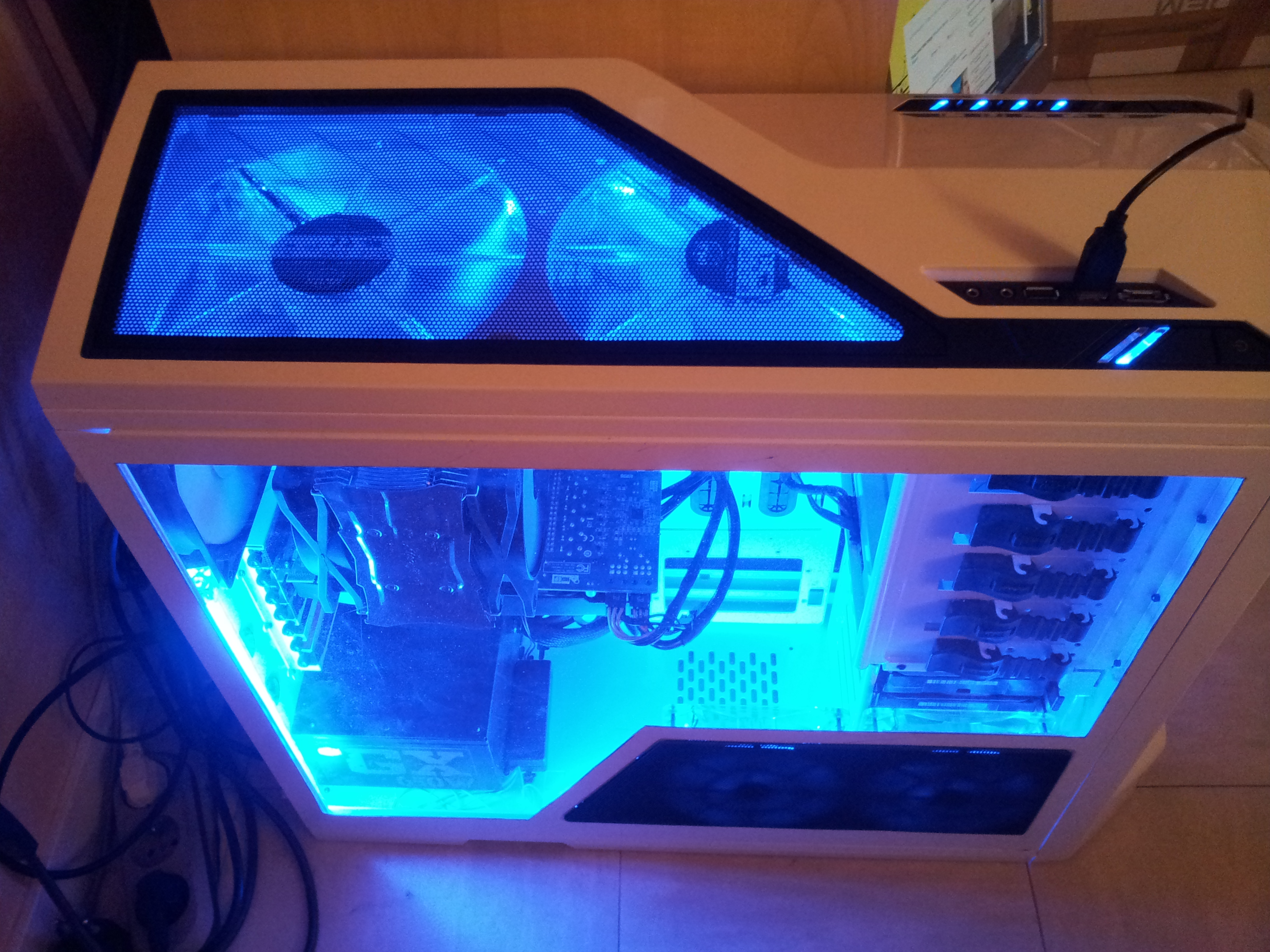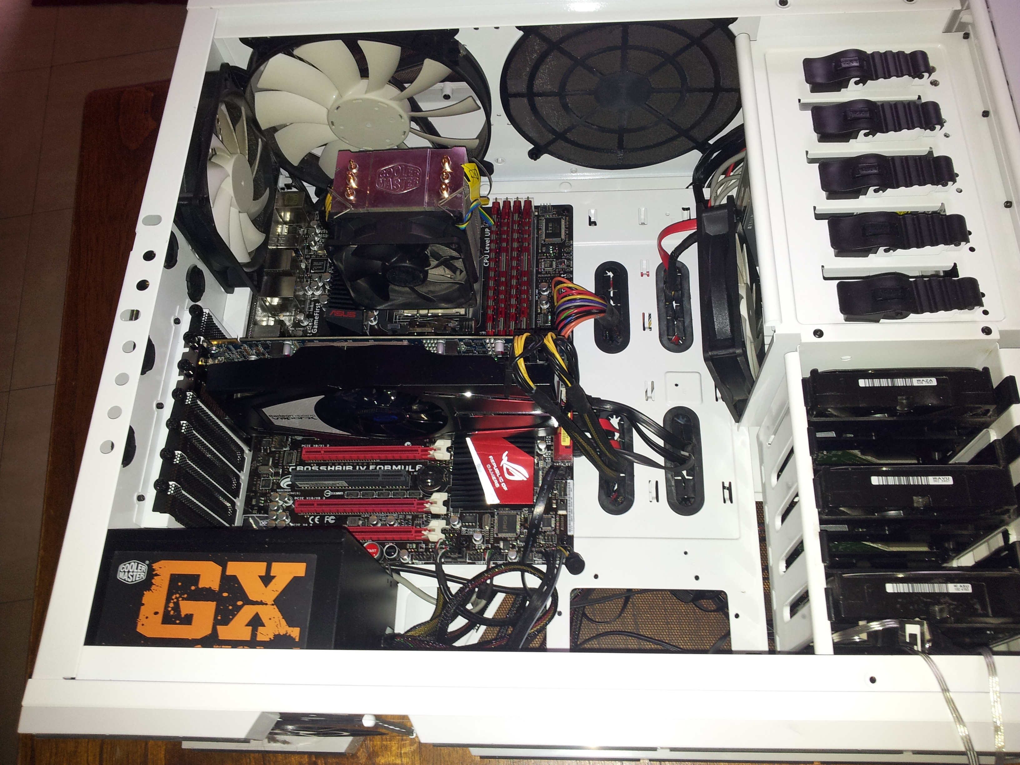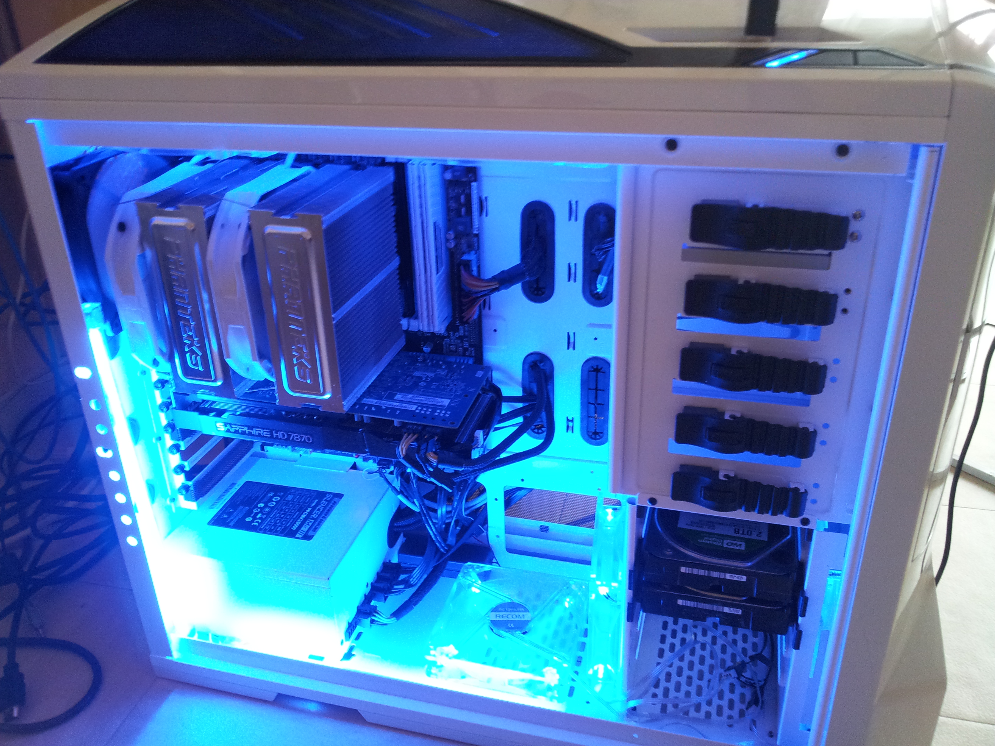 Donc voila, en partant sur une base d'un phantom blanc dans lequel était monté une asus crosshair4 formula couplée à un AMD phenom 2 X4 965BE qui tournai plutôt pas mal mais souhaitant découvrir la puissance du saint 2500k et ses capacité d'Overclock faramineuses je me suis lancé dans ce changement.